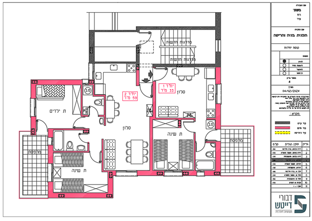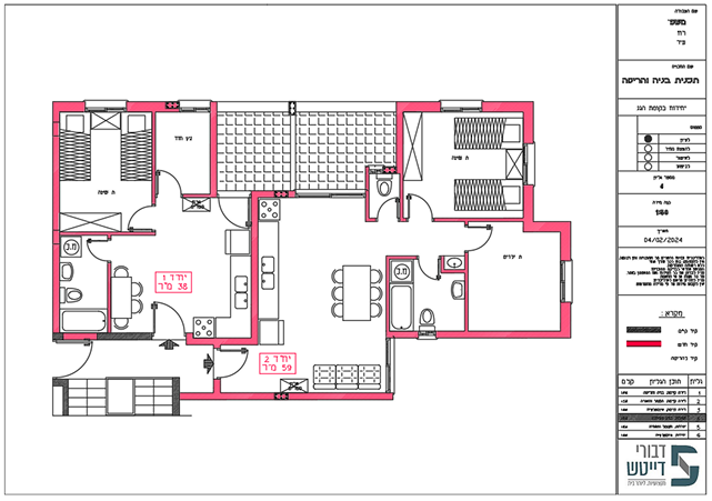 דוגמא נוספת, שוב חלוקה ל-2 יחידות בקומת גג: